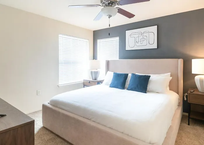 For those who prefer to cook, Landing Modern 2Bd Pool Gym Apartment provides an equipped kitchen for preparing homemade meals. Tulsa International airport is located 30 km away, while Bass Pro Shop bus station is in proximity to the apartment.